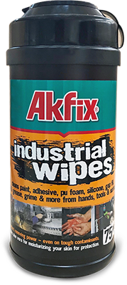 Akfix INDUSTRIAL WIPES are industrial strength hand cleaning wipes that are capable of removing oil, grease, paint, ink and adhesives. The textured side of the wipe will gently but efficiently remove all ingrained contamination. The smooth side of the wipe will effectively retain contamination and will prevent re-soiling of the hands. Hands are clean and dry in one application, all without the use of water.